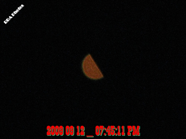 Do not be mistaken, it is not an image of a moon or any heavenly planet but that of a faint source of light from a neighboring house some 200 meters away.